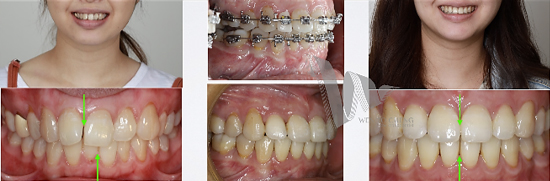 患者主訴前牙不美觀,檢查後有中線歪斜、缺牙、多顆根管等問題,先由其他科醫師進行基本治療,歷經三年矯正,側門牙植牙,最終達成病人的期待。若治療中矯正醫師與假牙醫師沒有適度的溝通,可能會造成前牙美學成果出現落差。例如矯正完牙齦高度不同,牙齒形態難做到自然,黑三角明顯等等問題,稍一不慎可能就得再重黏矯正器微調角度,進而拉長治療時間。因此這次請到施柏聖醫師來分享假牙醫師的治療觀點,讓矯正醫師們在遇到類似的合作案例時可以有效率的執行。